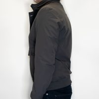 Blouson gris, 4 poches devant, 2 poches intérieures avec zip, bord côte au niveau des manches et du bas